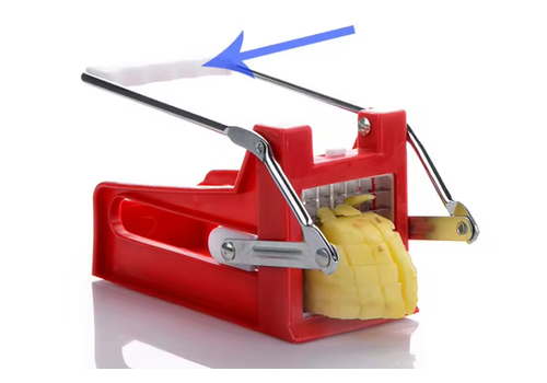 Βγάλτε τη φλούδα και καθαρίστε την πατάτα, τοποθετήστε την στον κόφτη, τραβήξτε το βραχίονα και θα έχετε απόλυτα συμμετρικές σπιτικές πατάτες σε δευτερόλεπτα