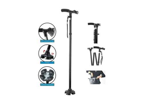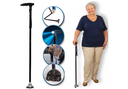 Πρωτότυπο και λειτουργικό πτυσσόμενο μπαστούνι με ισχυρό φακό LED , περιστρεφόμενο πέλμα για κάθε επιφάνεια , απαραίτητο σε πεζοπόρους , ορειβάτες , φυσιολάτρες και ηλικιωμένους. Ελαφρύ , ανθεκτικό, πολυχρηστικό .