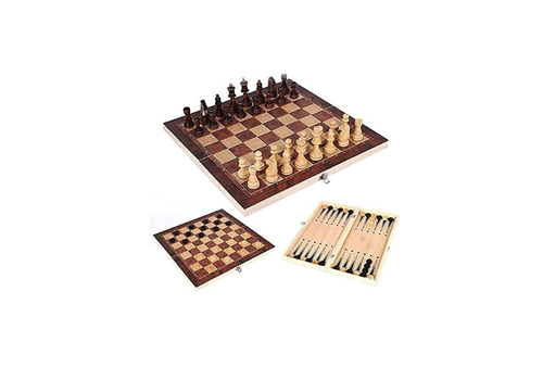 Ξύλινο επιτραπέζιο σετ σκακιού - τάβλι 3 σε 1 για παιδιά και ενήλικες με αναδιπλούμενο και πτυσσόμενο πίνακα