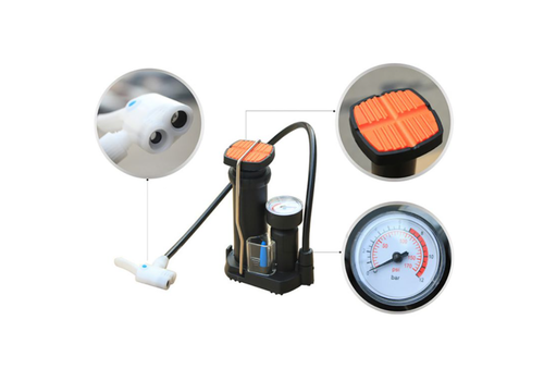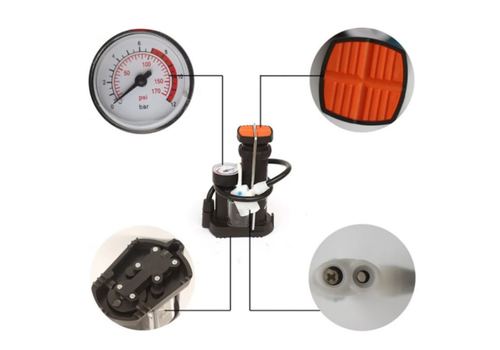 Έχει εργονομικό σχεδιασμό εύκολο στην χρήση . Απλά πατάτε το πεντάλ κ φουσκώνετε το λάστιχο , καθώς το σιδερένιο σκαλοπάτι διατηρεί την ισορροπία της συσκευής