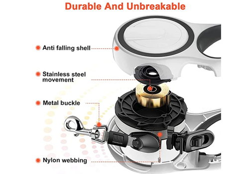 Με το βελτιωμένο ισχυρό σχοινί ελατηρίου και αντι-περιέλιξης, το λουρί του σκύλου μπορεί να τραβηχτεί απαλά και να απελευθερωθεί σε οποιαδήποτε γωνία, δίνοντας στο κατοικίδιό σας άφθονο χώρο για να απολαύσετε ελεύθερα.