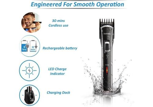 Αδιάβροχη ξυριστική μηχανή με κεφαλές από ανοξείδωτο ατσάλι και επαναφορτιζόμενη μπαταρία.Είναι κατάλληλη για να τη χρησιμοποιήσετε και στα μαλλιά και στα γένια Εφαρμόστε όποιο μήκος επιθυμείτε, καθώς η κουρευτική μηχανή σας δίνει 4 διαφορετικές επιλογές μήκους μεταξύ 14 και 20 χιλιοστών.Είναι πολύ απλή στη χρήση, έχει εργονομική λαβή, μπορεί να χρησιμοποιηθεί ακόμα και μέσα στο μπάνιο, ενώ το καλύτερο όλων είναι ότι πλένεται πανεύκολα κάτω από το νερό, για να είναι πάντα καθαρή και έτοιμη προς χρήση.
