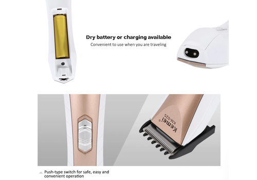 Η Kemei-025 σας επιτρέπει να κουρέψετε τα μαλλιά σας με άνεση και ευκολία και σας παρέχει ό,τι χρειάζεστε για ένα επαγγελματικό αποτέλεσμα. Διαθέτει ατσάλινη λεπίδα ακριβείας και εργονομικό σχεδιασμό για άνετη χρήση.