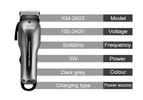Κουρευτική επαναφορτιζόμενη μηχανή Kemei KM-2603 , 100% προσαρμόσιμη