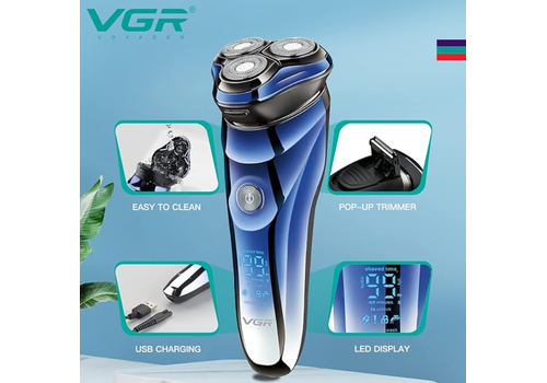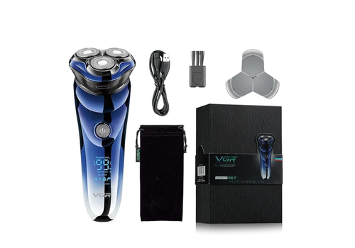 Ασύρματη επαναφορτιζόμενη, πλήρως αδιάβροχη ηλεκτρική ξυριστική μηχανή τριών κεφαλών με αναδυόμενο trimmer με ψηφιακή οθόνη LED
