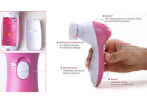 Αυτή η ηλεκτρονική φορητή συσκευή καθαρισμού προσώπου διαθέτει πέντε εξαρτήματα για να εξυπηρετήσει όλες τις ανάγκες ομορφιάς και άνεσης. Αυτό το κομψό, ροζ και λευκό πολυλειτουργικό εργαλείο καθαρισμού είναι ένα ελαφρύ αξεσουάρ ομορφιάς.