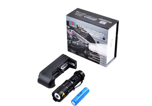 Mini φακός προβολέας με zoom επαναφορτιζόμενος