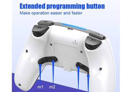 Αυτό το ασύρματο χειριστήριο P02 Bluetooth V4.0 διαθέτει 2 κινητήρες ασύμμετρης δόνησης, κουμπί εκτεταμένου προγραμματισμού, κλασικό χειριστήριο, νέα κουμπιά, άνετο κράτημα και ευαίσθητη ανίχνευση αξόνων, προσφέροντάς σας την καλύτερη εμπειρία χρήστη και εμπειρία λειτουργίας.